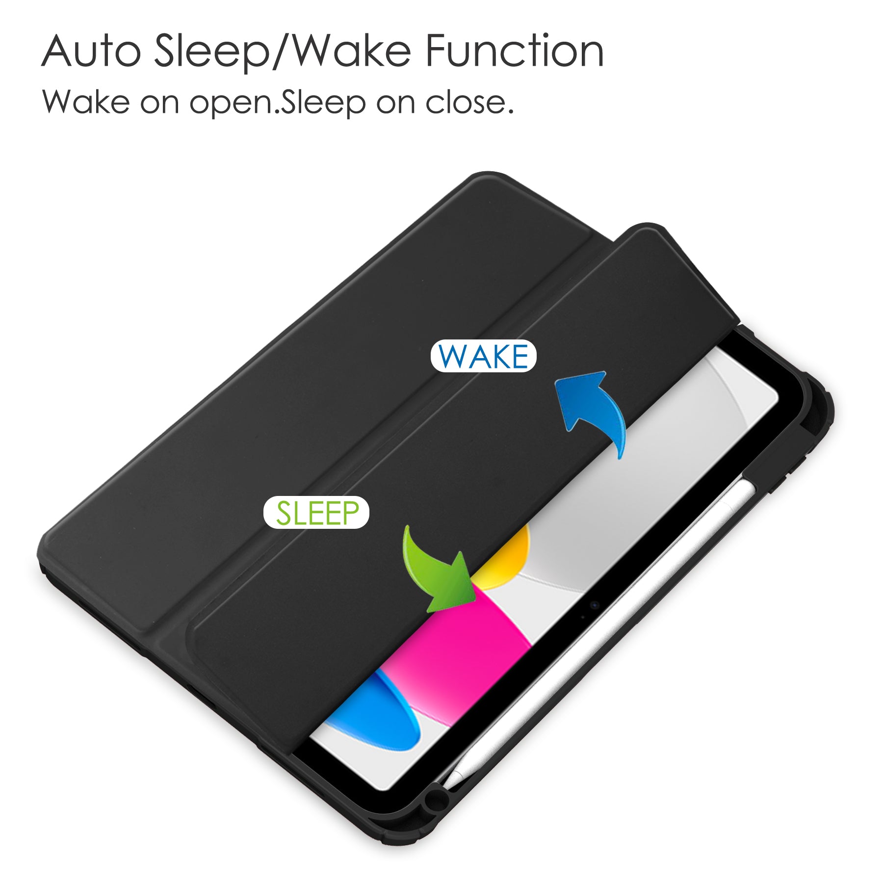 • Magnetic cover easily folds for two different standing modes and automatically turns sleep/wake mode on/off when open or closed